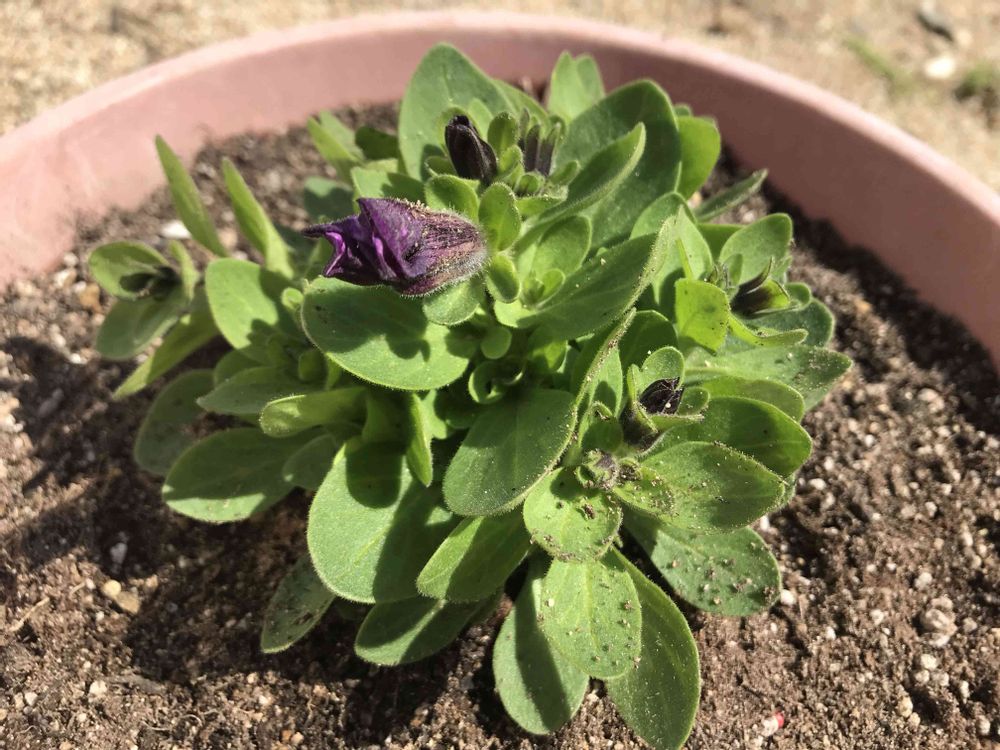 この鉢、ほんとに何もしないで屋外に置きっぱなしだったの だからビックリ ん?なんか生えてる?雑草か?と思いながら温存してたらペチュニアでした❣️