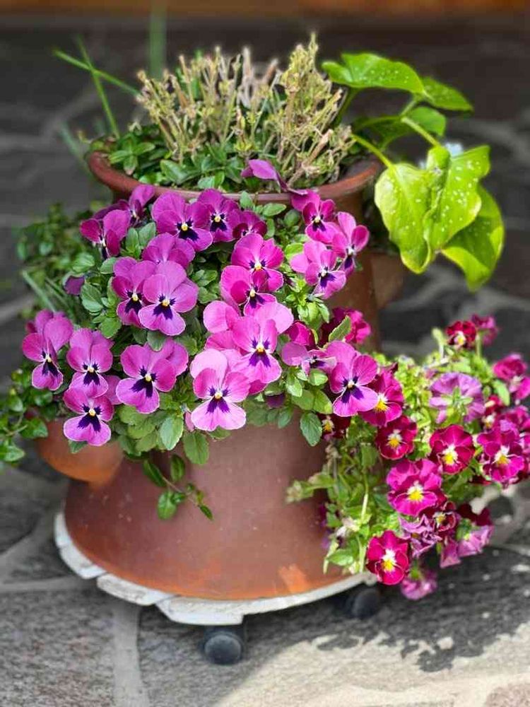 なおさんのよく咲くスミレ ラズベリー,フリル咲きビオラ シャルロット,寄せ植えの投稿画像