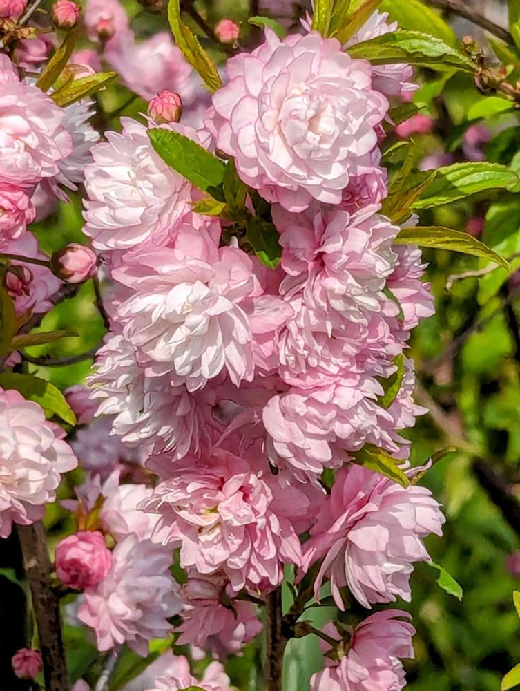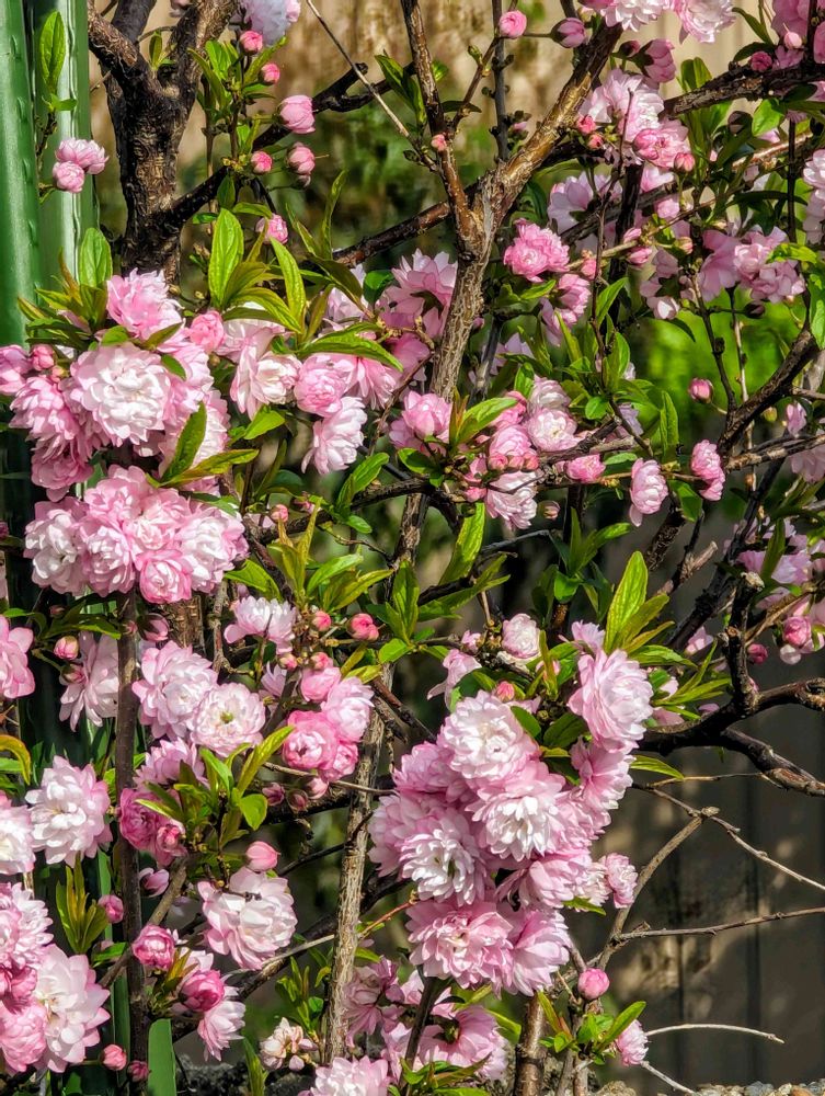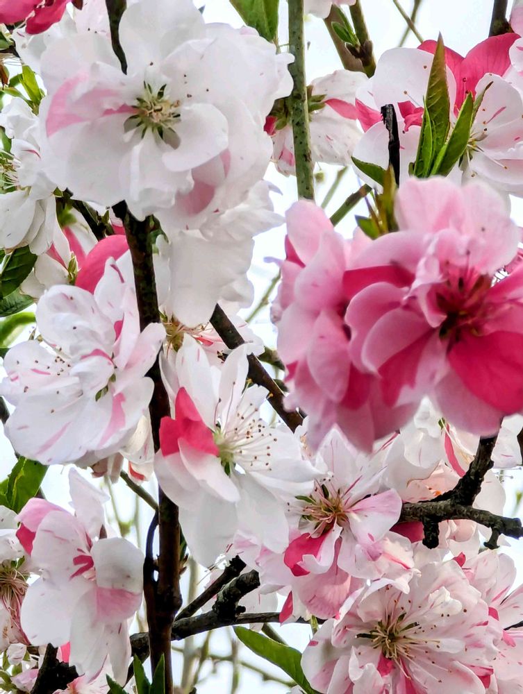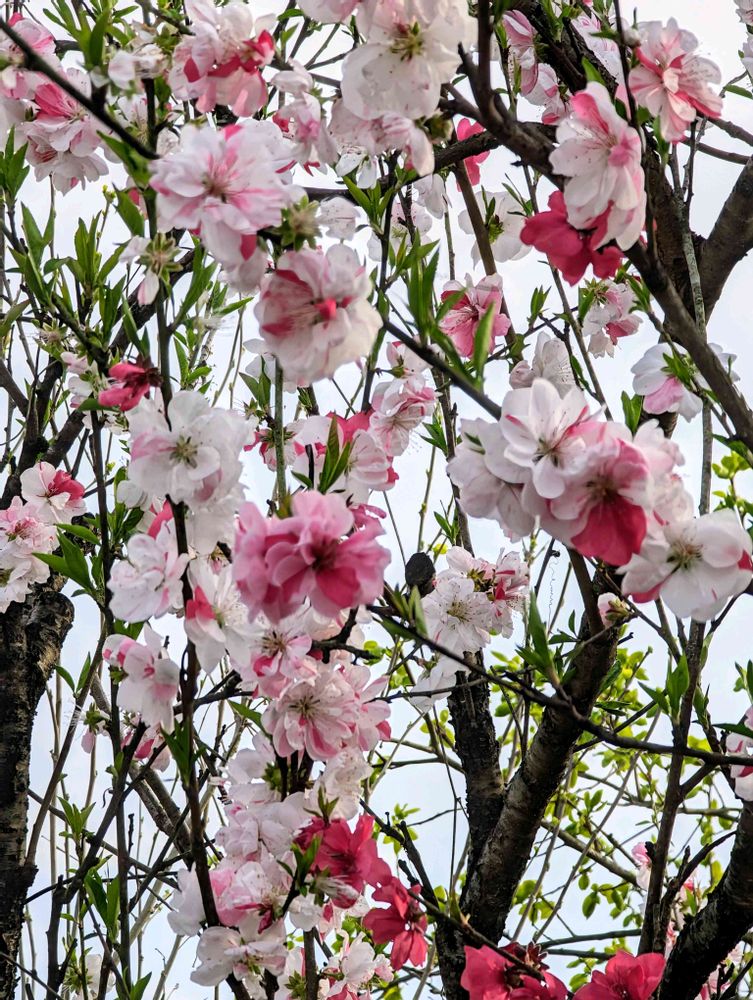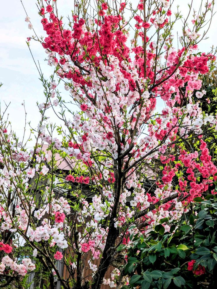 満開の源平咲きのハナモモ(花桃)とニワザクラ(庭桜)に出会いました🌸