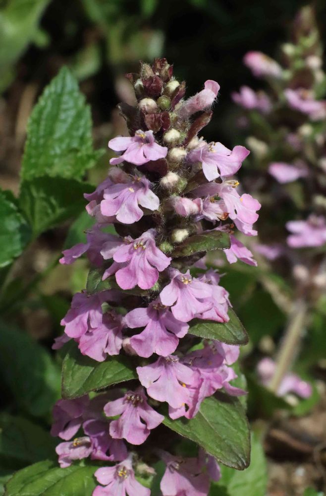 こんにちは、ピンクのアジュガ