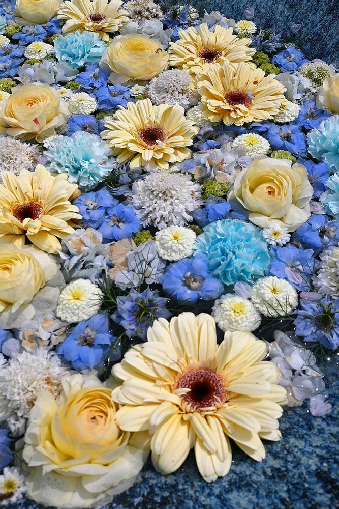 3日前くらいに撮ったお城の花手水、爽やかな夏色でした🩵💛🌿😊