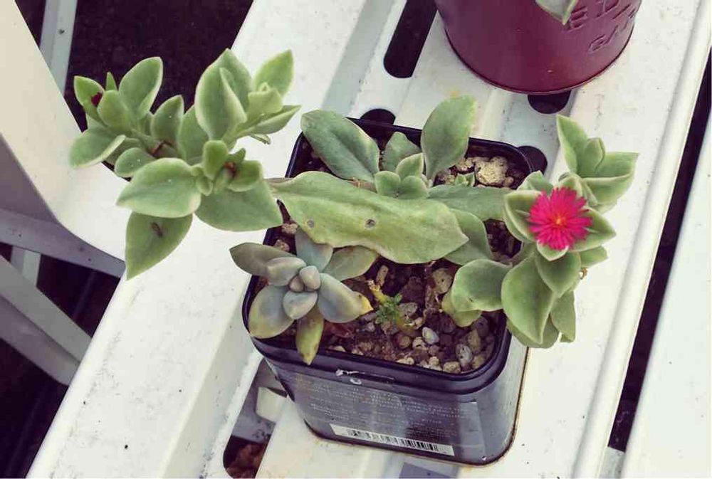 右に伸びたベビーサンローズにもお花がつきました🌸今のところ、最初のように虫に食われてはいない様子…!真ん中の大きな葉っぱは明日摘み取らなくちゃですね☺️