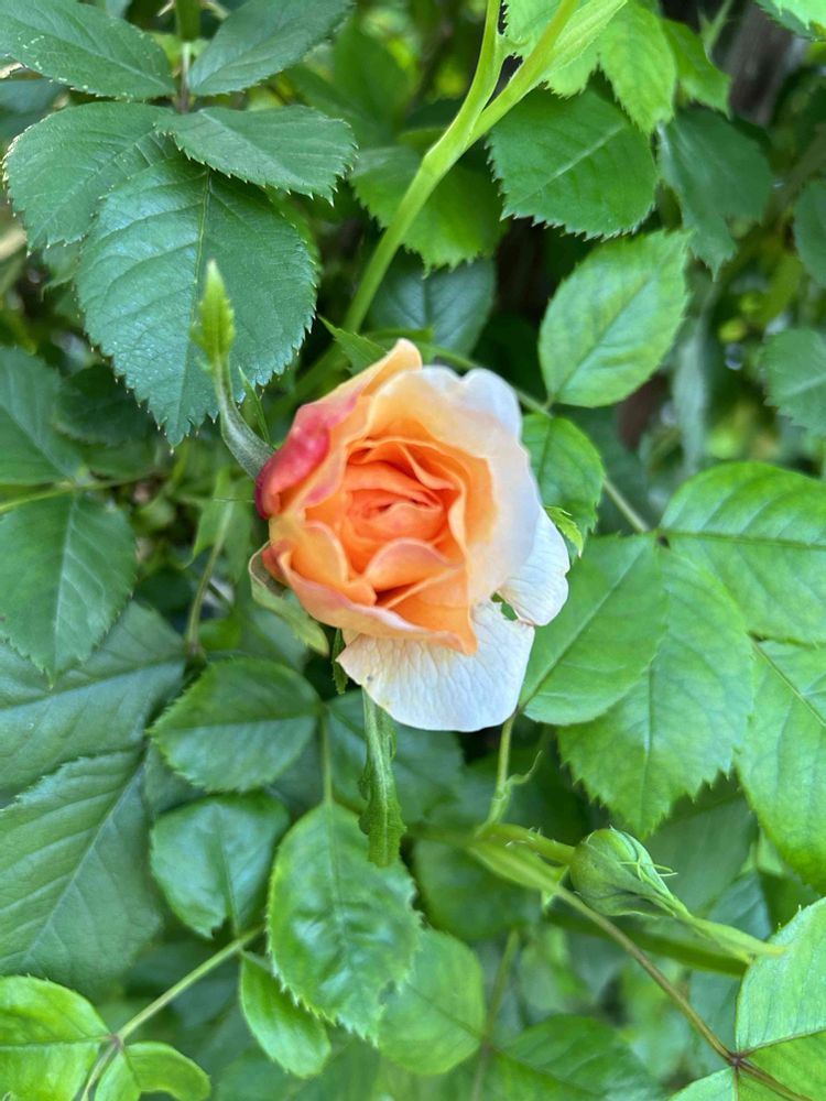 今年のバラ🌹の1番乗りはラベルポーが一輪咲いてました😊後モッコウバラと去年は咲かなかったアイリスさん😊