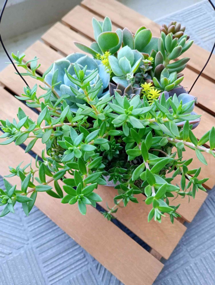 私はね垂れ下がって欲しかったわけです…なのにツンツンしてる💦元気な証拠ですけどね。ここから重くなって下がるんでしょうけど…前から見ると後ろの多肉さんたちほぼ見えません( ˊᵕˋ ;;;)笑 ま、春ですからね🌸元気が1番ってことで(๑ーωー)وヨシ!