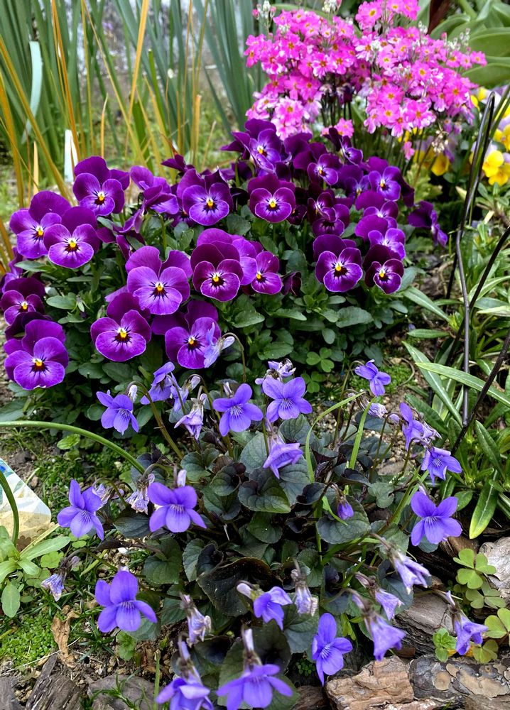 超オススメ❣️宿根黒葉ビオラ、ラブラドリカ😊(原種スミレ、手前です)