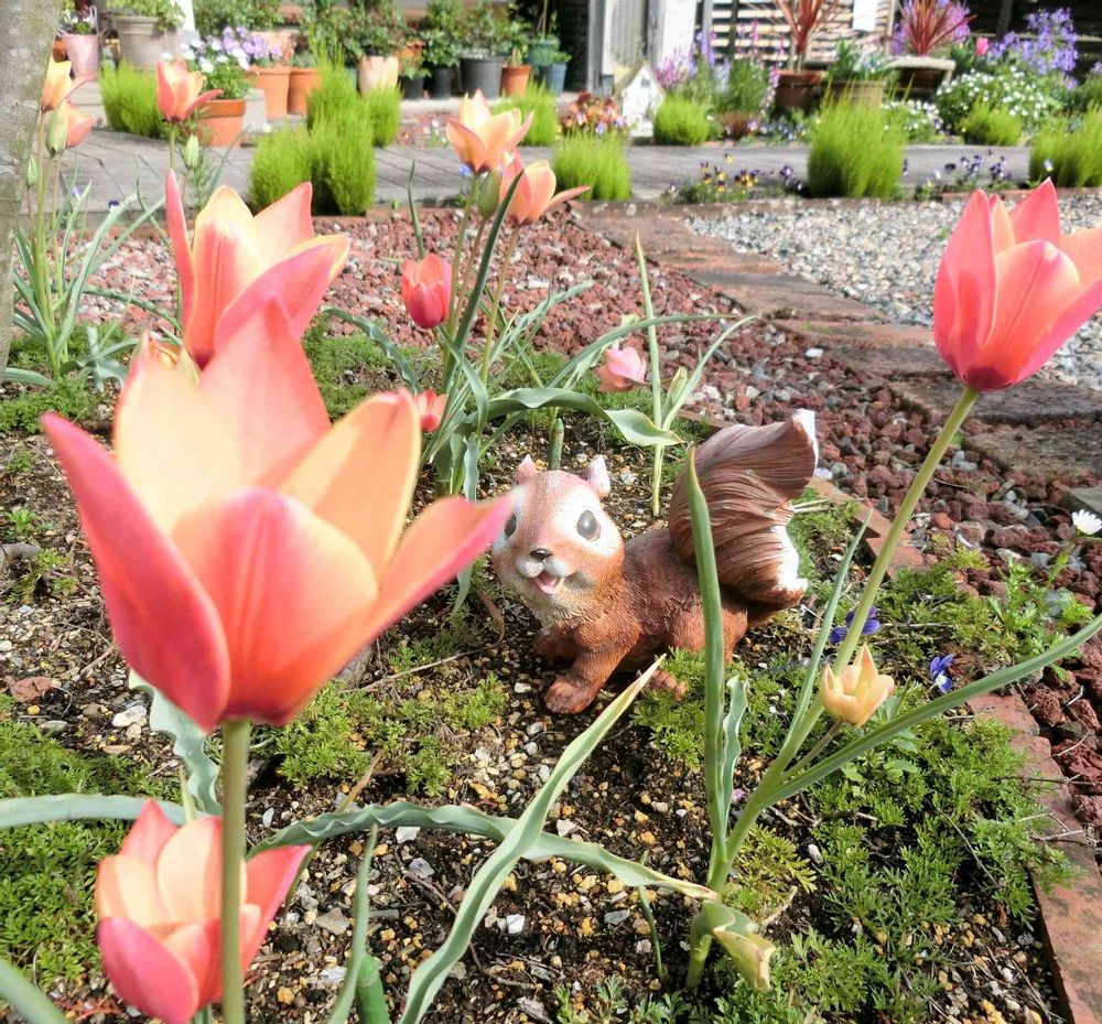 グリーンが素敵なお庭のアクセントになってる🎶チューリップも沢山咲いて可愛いね🌷🌷