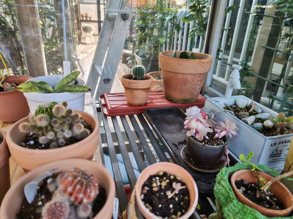 投稿写真は、植え替えを終えた多肉植物、観葉植物たち。