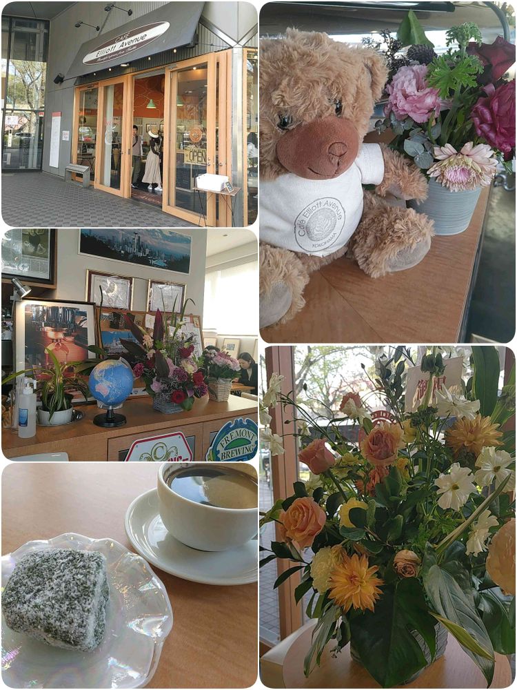 いつぱいブース見て疲れたので 近くのカフェへ。抹茶のケーキとコーヒーで一休み🧁☕