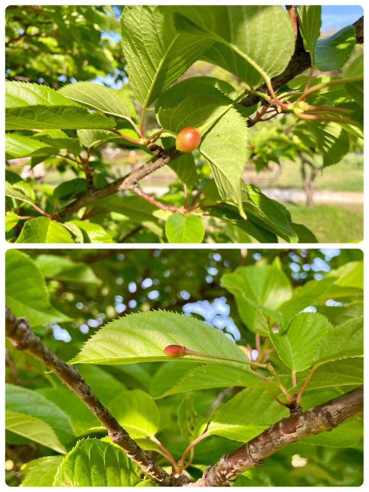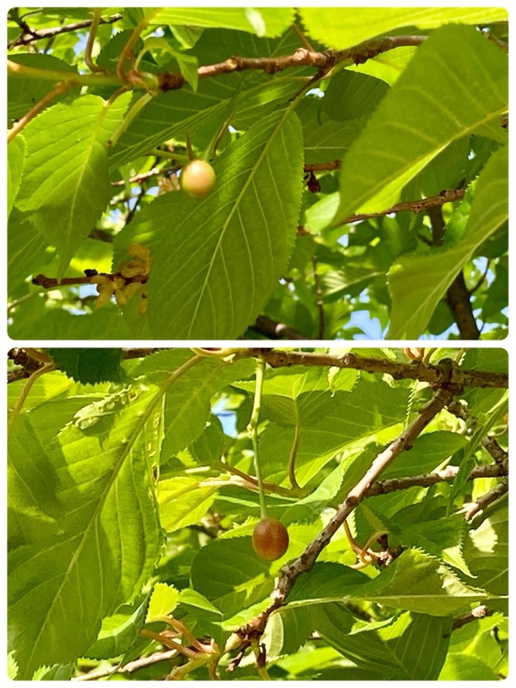 「カワヅザクラ(河津桜)」に小さなさくらんぼ🍒がなっていた。