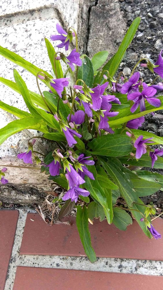 紫のすみれ 狭い歩道の隙間にきれいに咲いていますね〜