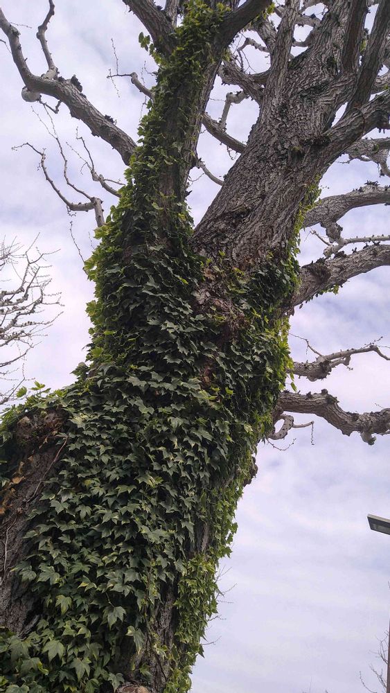 ⑤ 枯木のイチョウに巻き付いたアイビー🌿💚