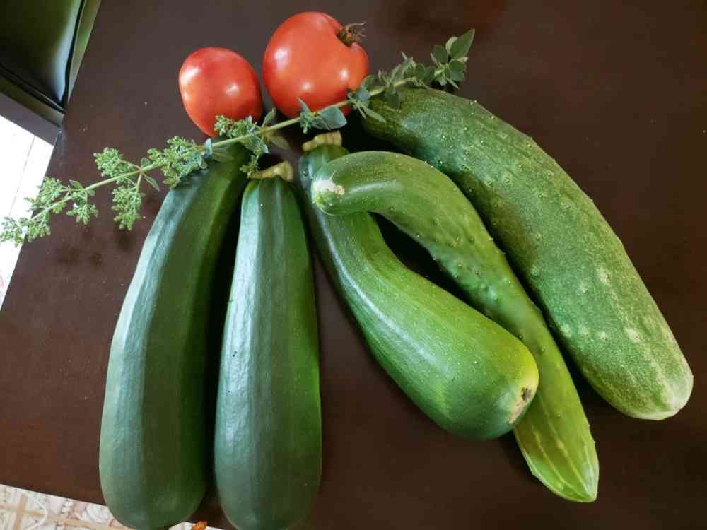プランターから収穫した野菜たち😊 今年はズッキーニや胡瓜も元気に育ってくれていて嬉しい😊