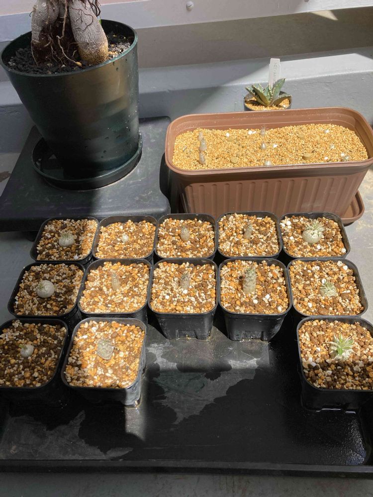 2021.12.4〜 北海道の地元にいたときチランジア好きになり、かれこれ7,8年くらい育ててますが全然上手に育てられません💦 2022春にパキポディウムとアガベの実生に初めて挑戦してから、塊根植物にドハマりしました。 実生株の日々の成長を見てるとホント癒されます✨ 実生を始め、パキポディウムやアガベの勉強をしてるうちに、なぜか株が増えました。謎ですね🙂 -------------------------------- ほぼほぼ日記であったり備忘録であったりなので、コメントやフォローは少なめです。