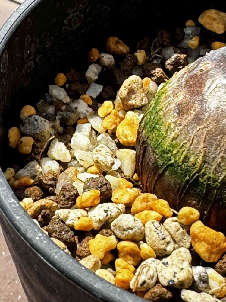 新芽の動きが良いので、購入した時の土から植え替えた