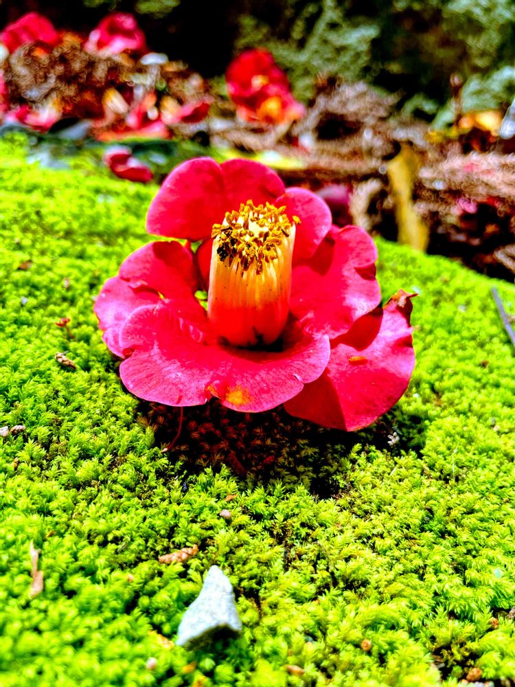 m&oさんの朝のウォーキングで,苔に椿,龍福寺卍の投稿画像