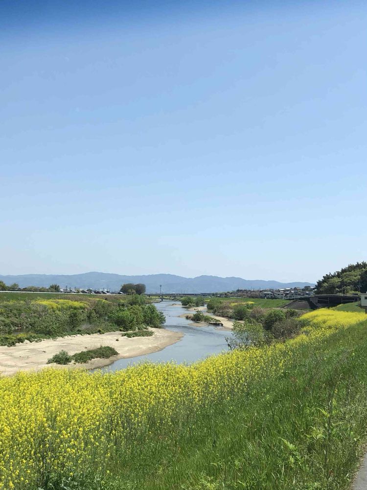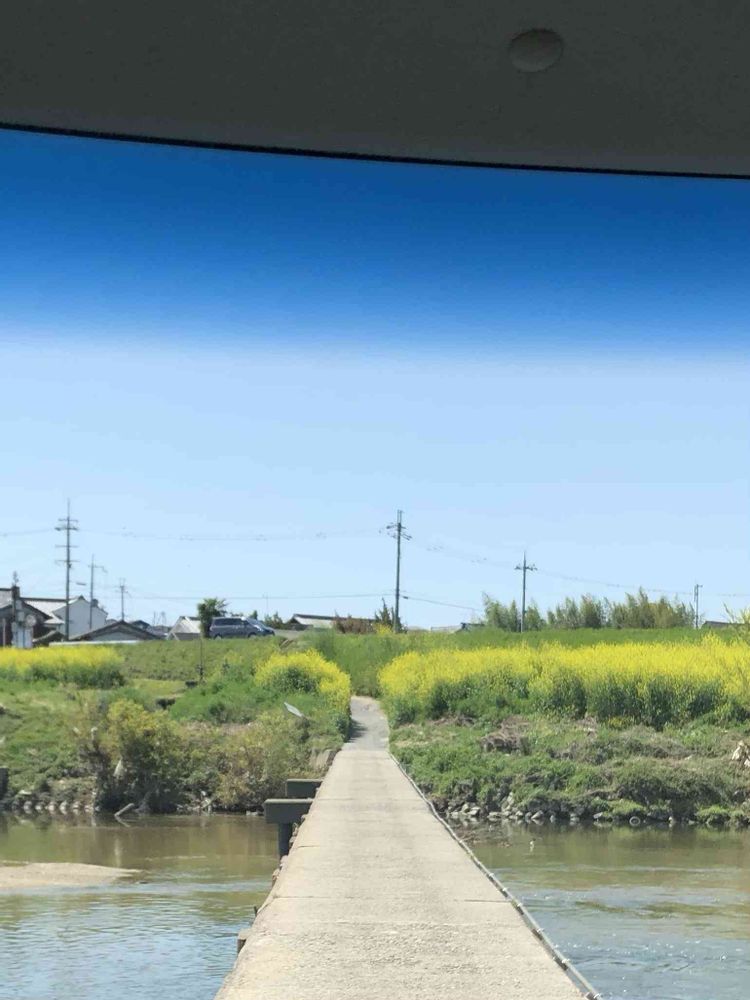 大和川にかかる沈下橋を渡って 菜の花畑に埋もれる