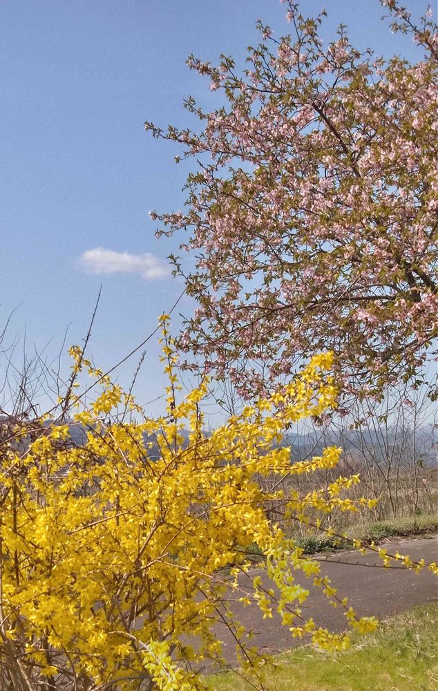 hirokoさんのレンギョウ,桜,河川の桜の投稿画像