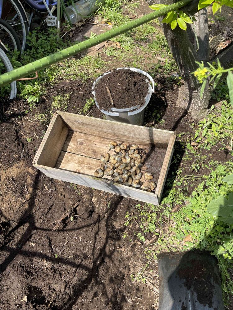 あとから後からカブトムシが現れて..そのたびに中断しては..の繰り返しで、なかなか作業が捗りませんでした。