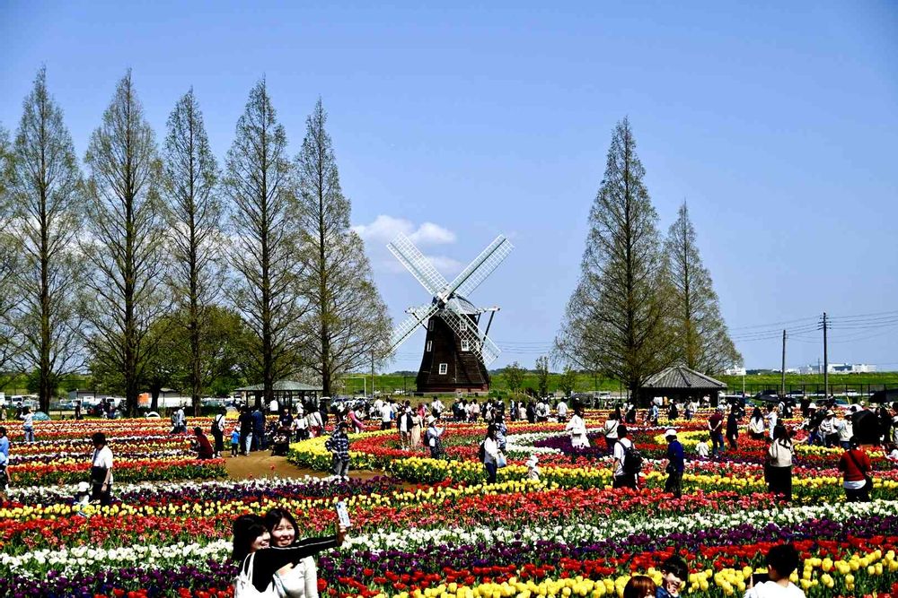 青空と風車とチューリップ🌷