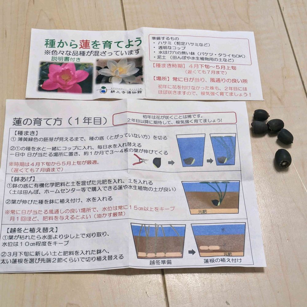 広島の生口島にハスや白石の有名なお寺があって、そこのおみやげコーナーに種が売っていました。