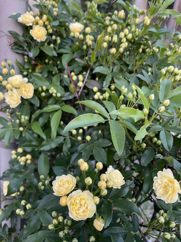 こんばんは、今日の暖かさでモッコウバラが咲き始めました。