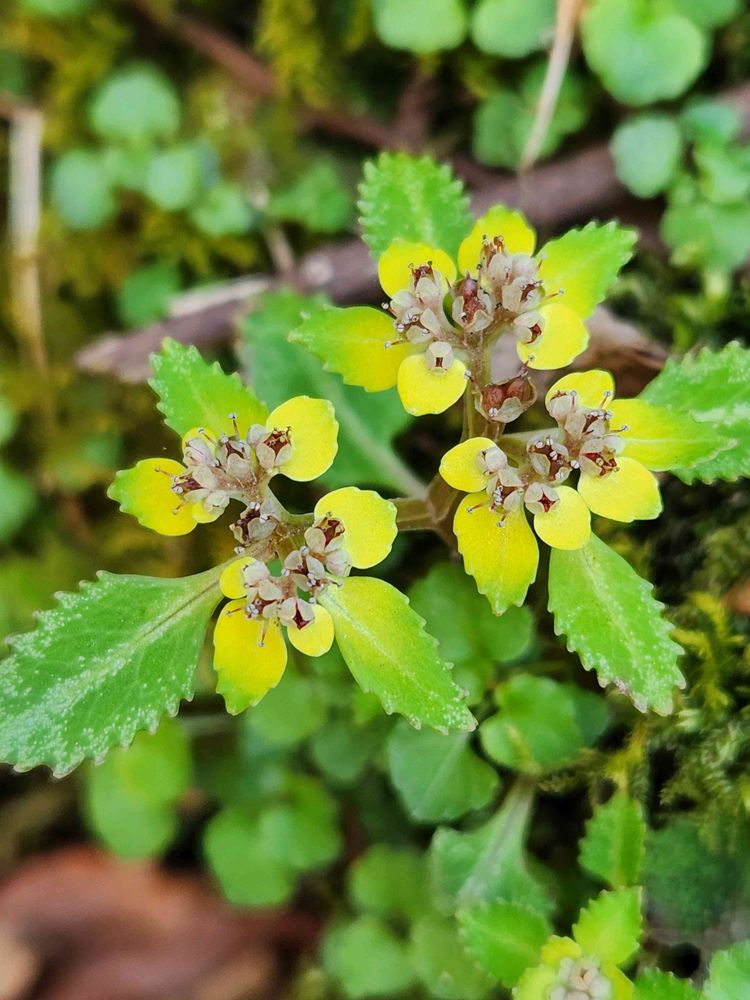イワボタンの変種でヨゴレネコノメソウのようですが葉が汚れた模様が少ないので迷いました🤭