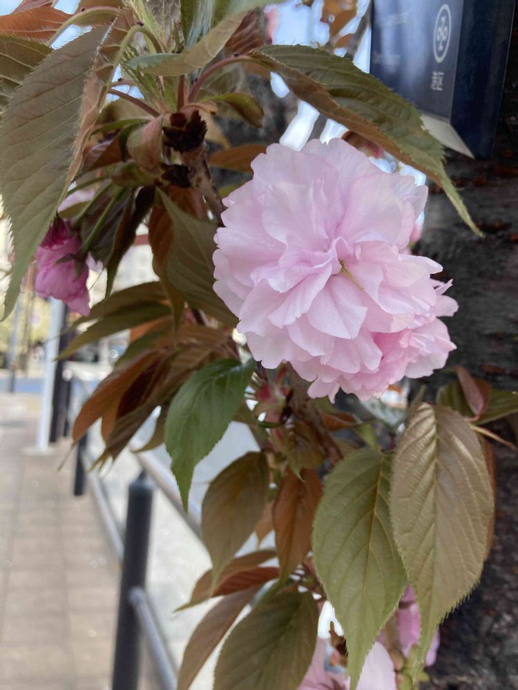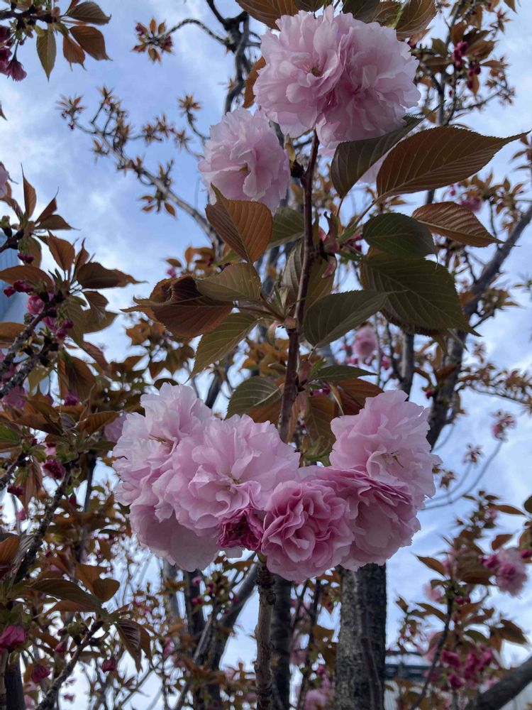 サトザクラ@芝浦です。ソメイヨシノが散った頃見ごろで、清楚なソメイヨシノに比べ妖艶だそうです。