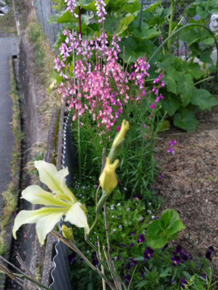 主人の仕事の倉庫の回りに畑や花壇にしてる場所に色々植えています! でも年と共にあちこちガタが来て少し減らさないと辛い時が有ります😆