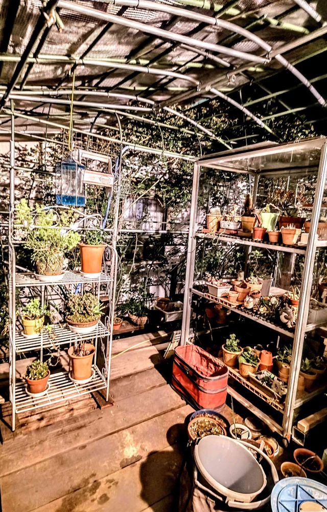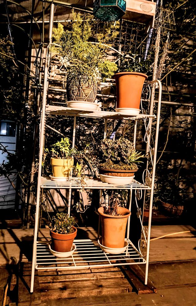 ③④は、家の中に置いていた3段ラックを2階回廊の温室の前に設置した写真。ラックには、多肉植物と観葉植物を置くことにした。