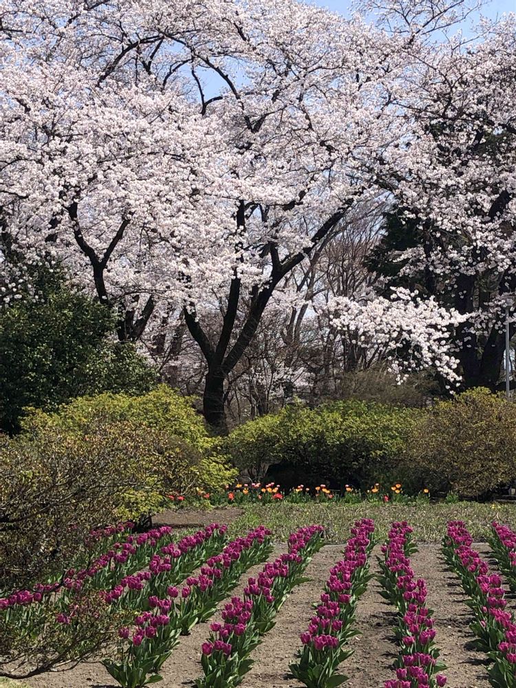 満開の桜🌸とチューリップ🌷が咲いている公園、素敵ですね