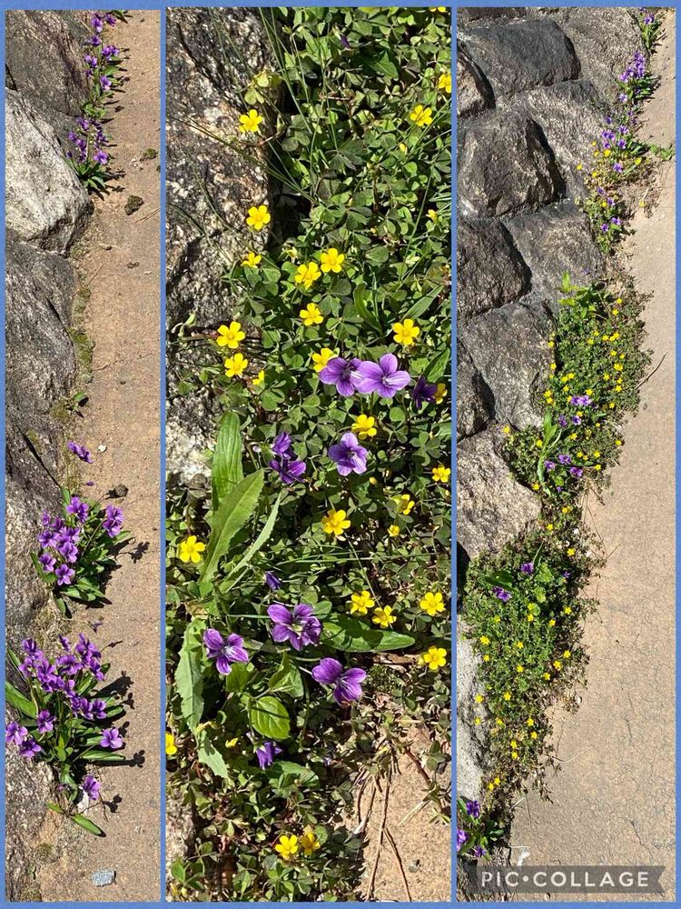 遊歩道の石垣に沿ってズラーと並んで咲いているスミレ可愛いです。