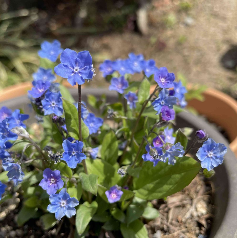「シラネアオイ🩷💜🤍 / キクザキイチゲ八重💜🤍 / アルカネット💙💜 / オンファロデス•チェリーイングラム💙」
