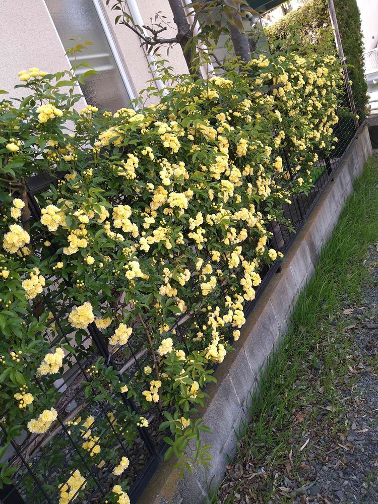 ❷10メートル程のフェンスに木香薔薇の屏風🟡🟡🟡
