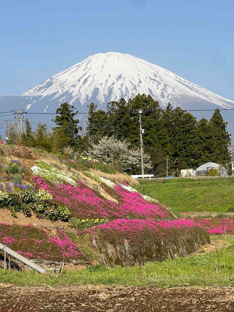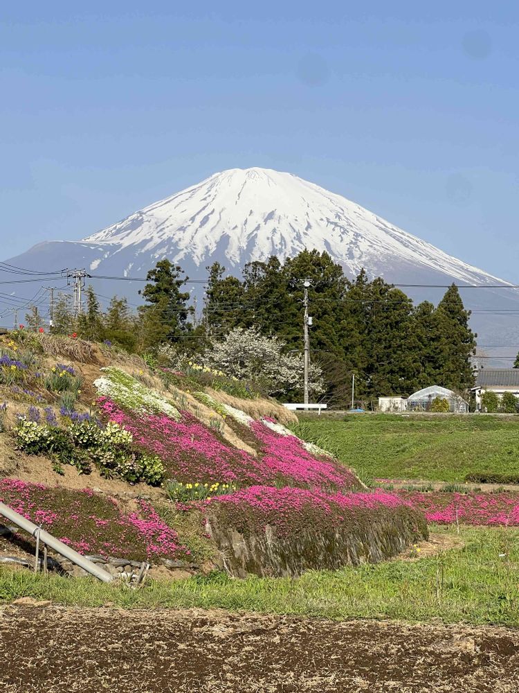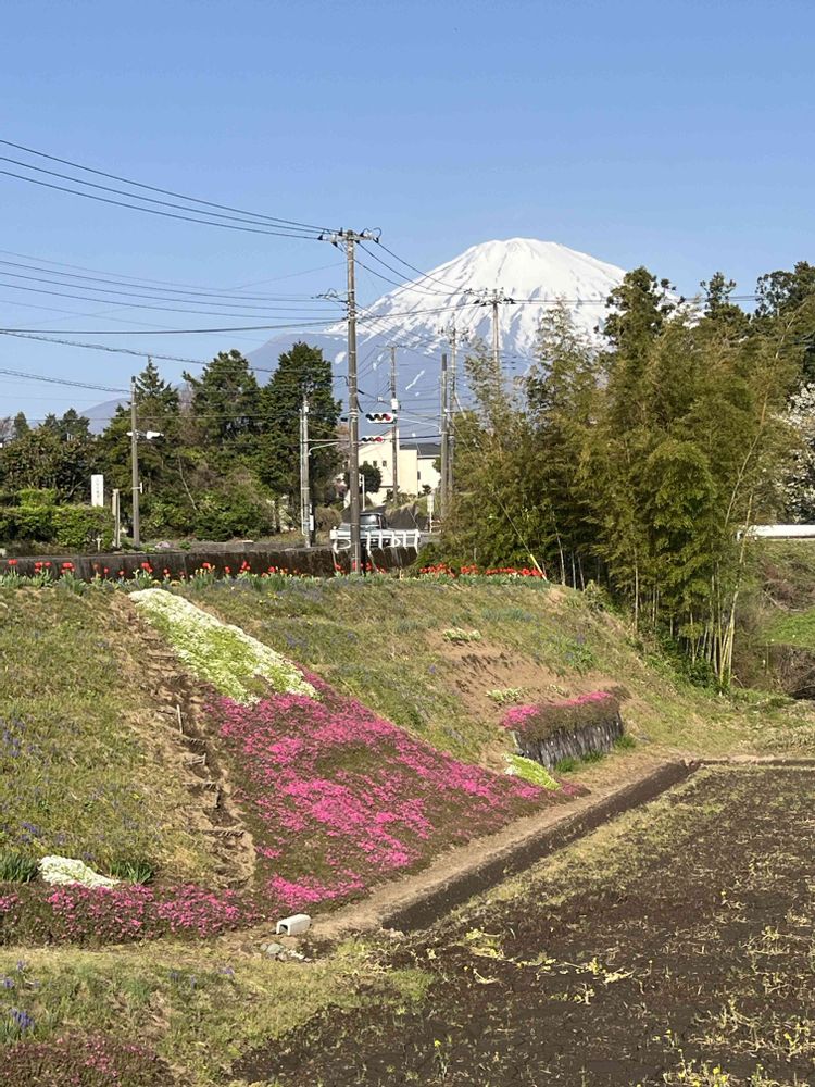 芝桜の芸術作品,田んぼの土手の芝桜,田んぼの土手に植えた富士山型の芝桜の投稿画像