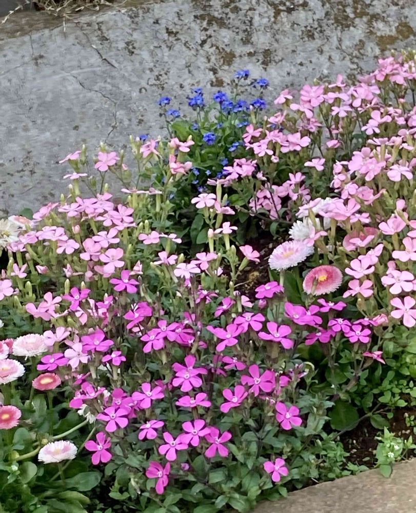 花散歩中🚶♀️可愛らしい小花ちゃん達の花壇の前で一休み🍹
