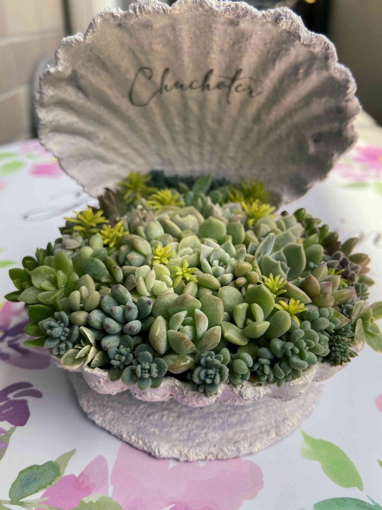 旦那さんにおねだり?無理矢理?買ってもらったシェルの鉢に葉挿しのチビ苗で寄せ植えしてみたけどグリーングリーン😅