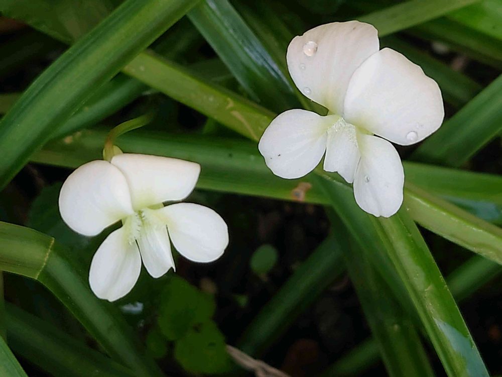 彼岸花の鉢の中から真っ白なスミレが咲きました🍀