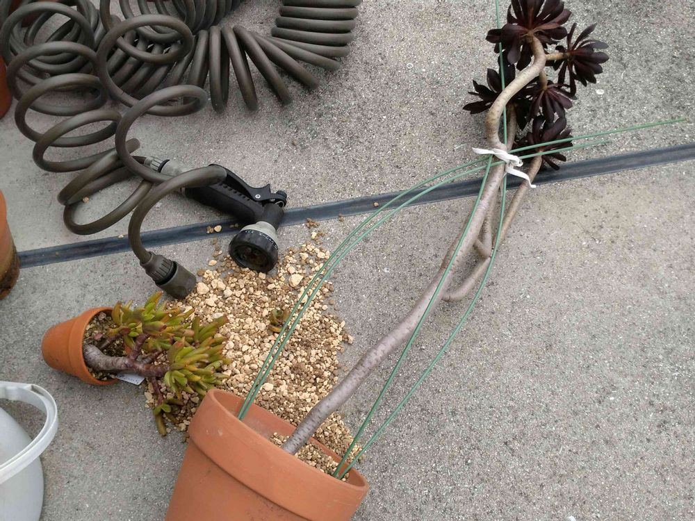 ボトルツリーやら黒法師やらドラセナやらガジュマルやらアレヤコレヤ鉢が倒れまくり😱😰