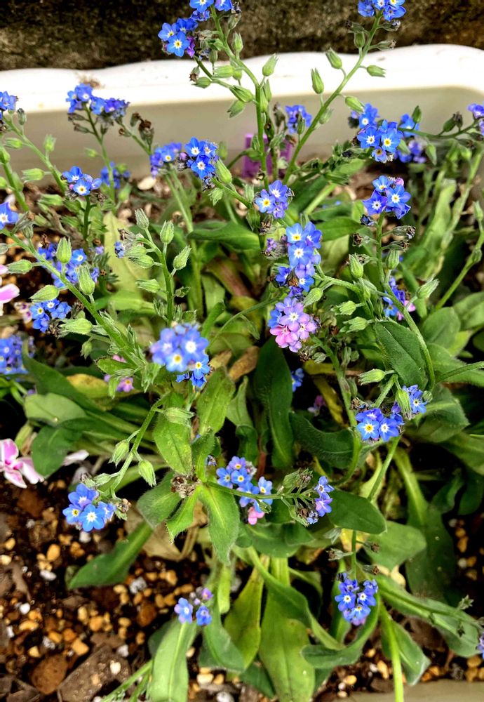 芝桜とわすれなぐさをプランターに寄せ植えしました🤍🩷💜