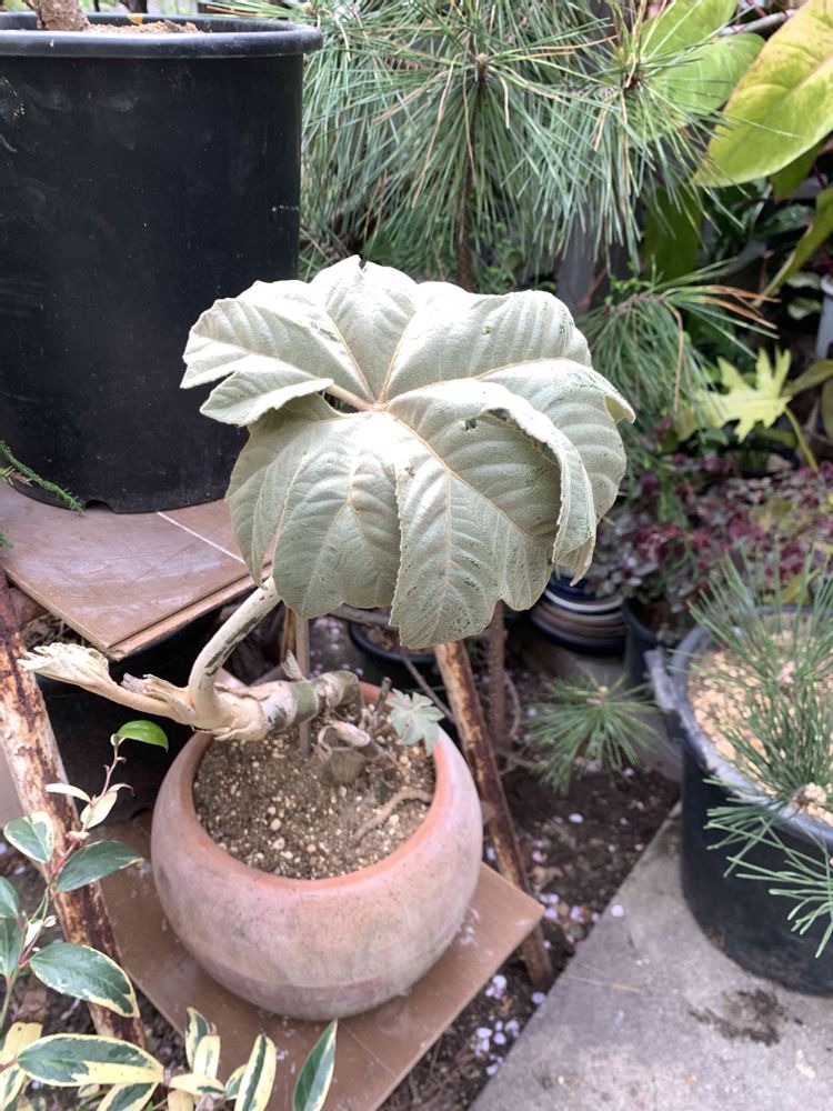 普通のヤツデより葉が大きく、モフモフしている。冬、外でこせそうなら地植えしてみよう。