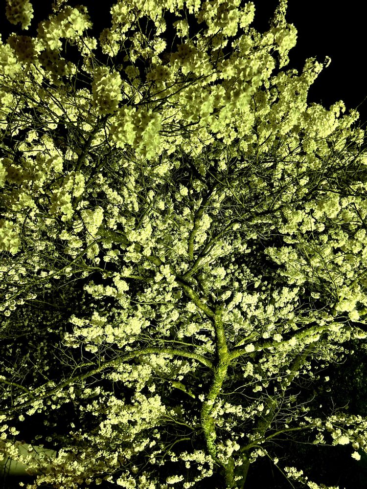 素晴らしい夜桜、グリーンにライトアップ✨✨