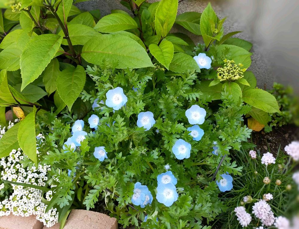 ネモフィラ、アルメリア、アリッサムも同時に咲きました😊