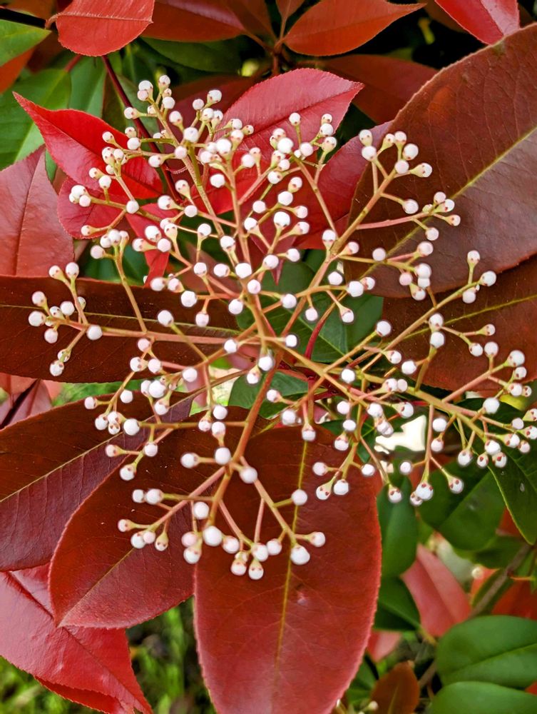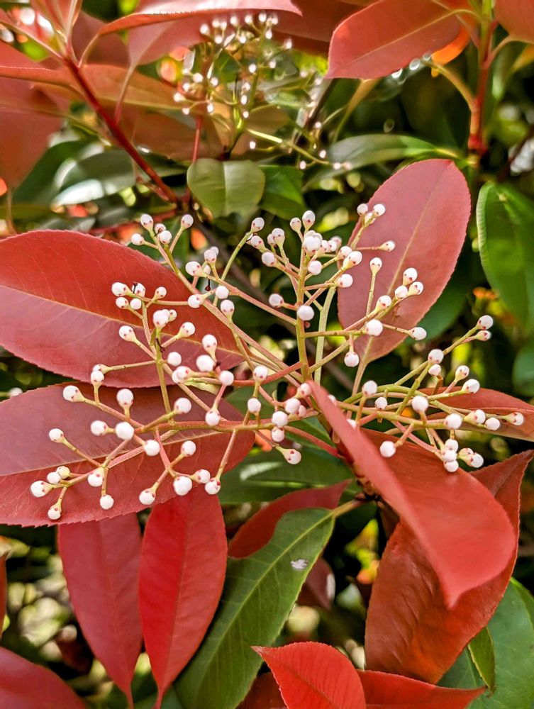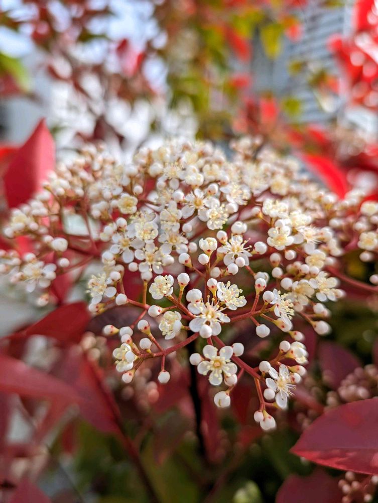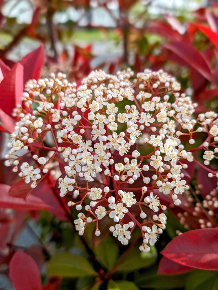 早朝に出したから良いんだけど、今朝の職場駐車場のオオカナメモチの花。