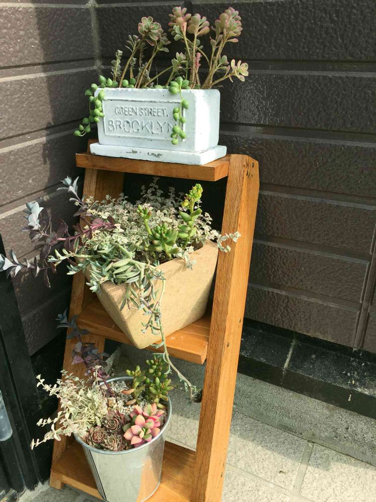 多肉用ラダーをDIY。3歳の息子が「エレベーター♬」と登りかけて焦った。そもそもエスカレーターでは??