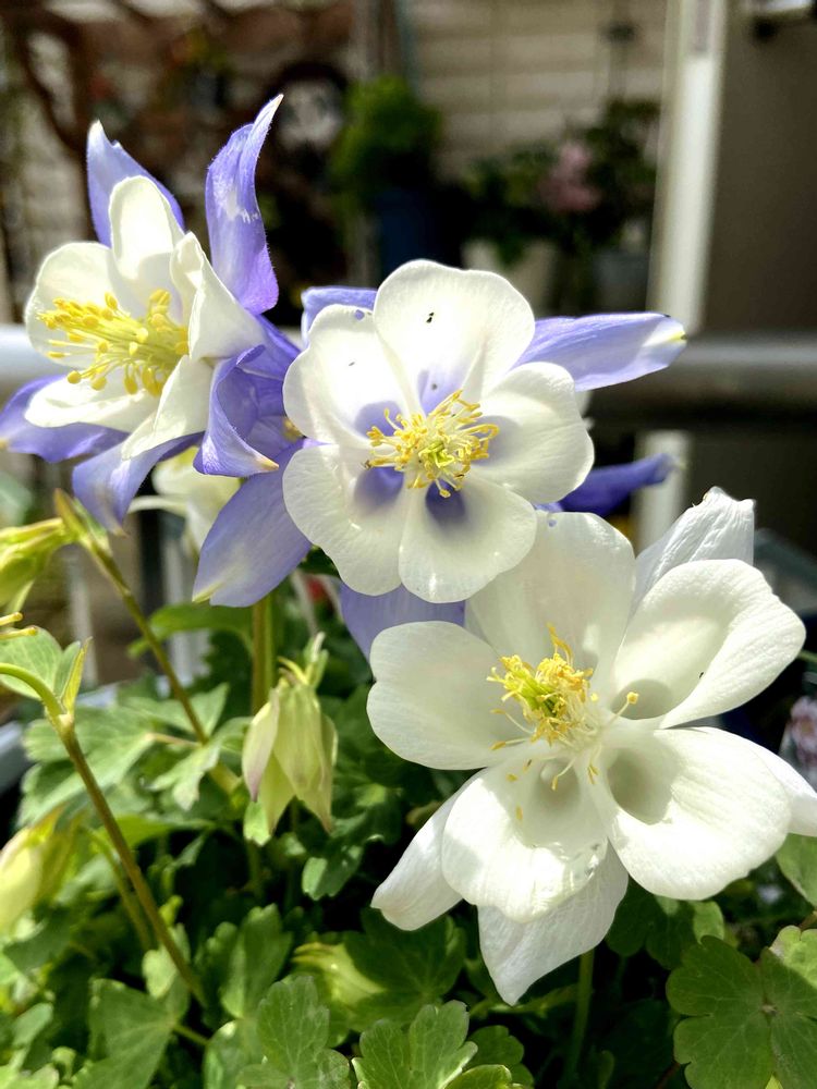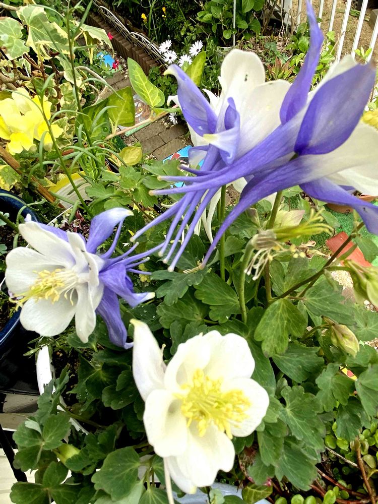 オダマキのキリガミさんの白🤍も咲き出して、紫💜と良い感じで競い合ってる💓 ホンマ癒されてます💞