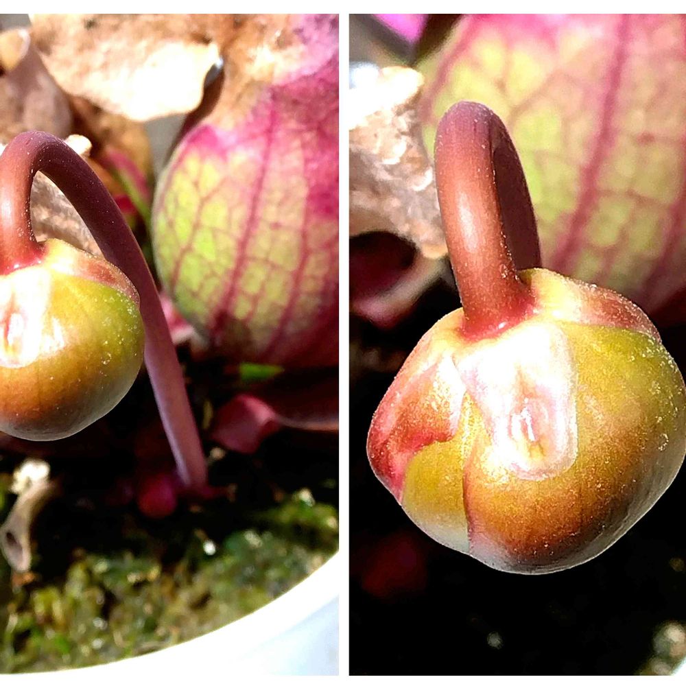 ⑤食虫植物〰️4/2 📪〜2週間 新芽🌱と思ってたら ☝️蕾かな?🤔 チョウチンアンコウみたいな スタイル🎶😁🤣 周径 5cm位でしたね🫡🤗