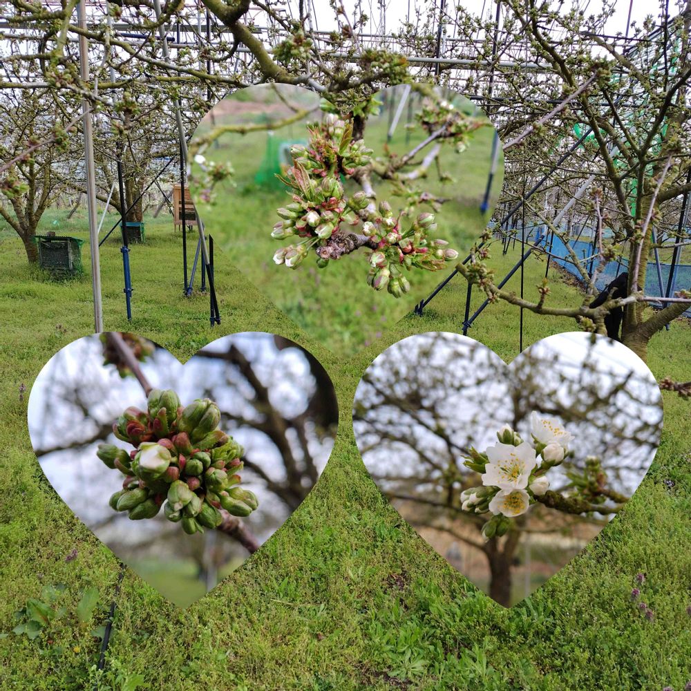 ここ何日かの暖かさで、一気に開花が速まり、どこの農家さんも消毒作業にいそしんでいました💓