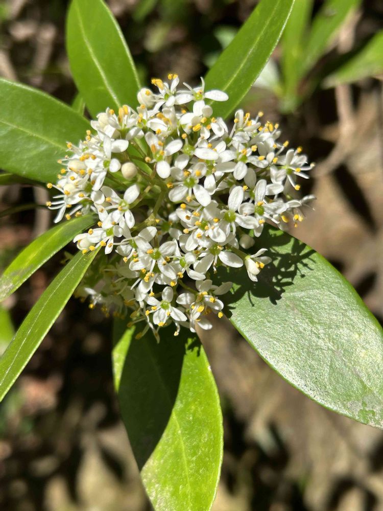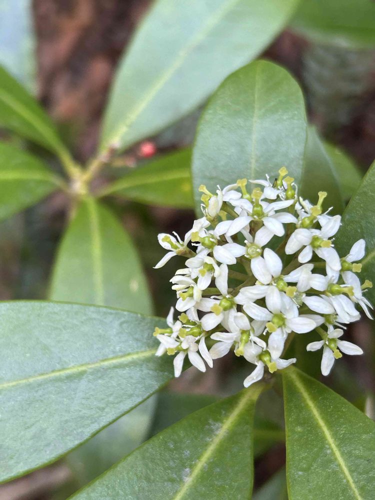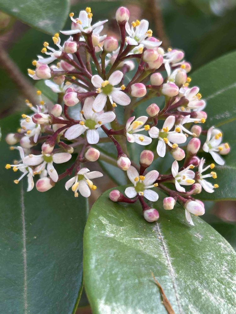 ミヤマシキミの雄花、雌花、沢山の小さなお花を付けるのですね⚪️⚪️⚪️💕