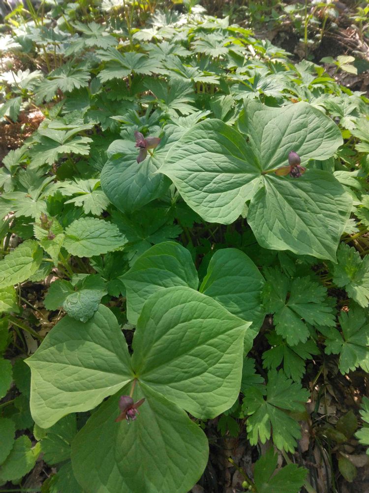 エンレイソウは雪国植物園にも咲いてましたよ。葉っぱの割にお花が地味で小さいので目立たないのかも…