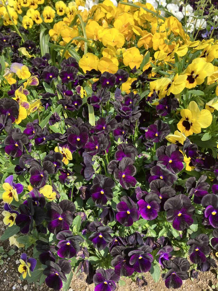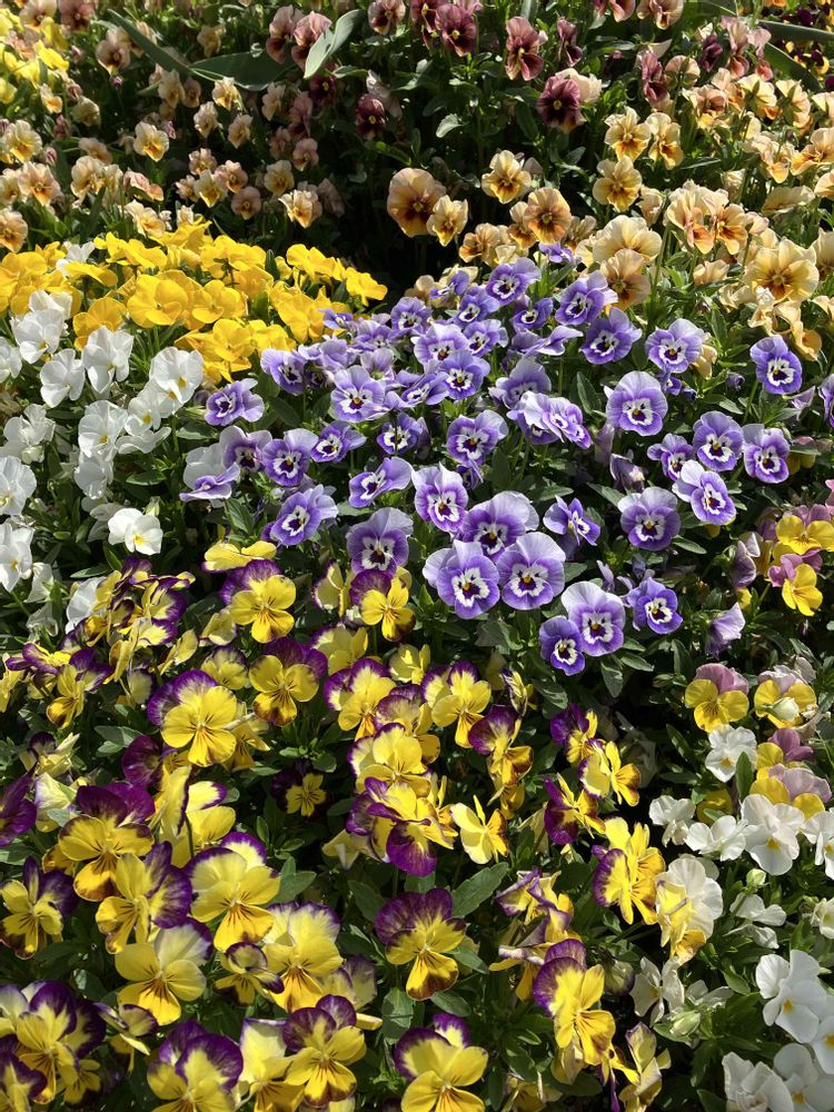 色々な種類のビオラやパンジーのお花が元気よく咲いていました😊🌸🌼